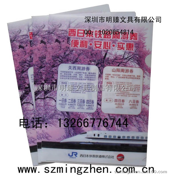 编号:二页袋(日本樱花图)尺寸:A4材料厚度:0.2MM材质:二页袋采用优质环保耐用PP原材料生产,在二页袋正面及反面柯式印刷公司宣传资料及公司标志,功能:用于企业宣传,同时用于企业办公文件的存档及管理