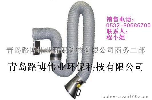 路博LB-JYB柔性吸气臂外皮采用耐酸碱耐140摄氏度高温进口PVC软管,内部构件及罩口托架均采用不锈钢材料,可360度任意悬停,带吸口风量调节阀。