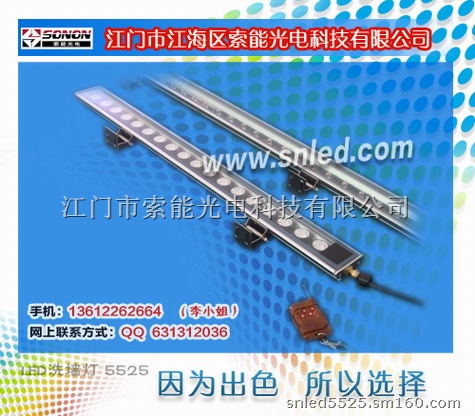 索能光电LED洗墙灯,LED大功率洗墙灯外壳采用铝合金灯体和整体模压加工工艺,确保了良好的散热效果,有效的减少了LED使用过程中的光衰。采用光学级PMMA高效透镜,光损小,照度好。独特的开关恒流源技术,确保了每颗LED稳定工作。