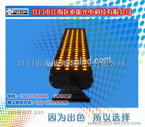 索能LED投光灯关键词:LED投光灯,LED大功率投光灯,大功率LED投光灯,LED投射灯,七彩投光灯,LED泛光灯,全彩泛光灯,带遥控LED投光灯,数码显示投光灯,投光灯外壳长任意*220*100162*100330*145*205312*167*300192*167*300600*167*300MM