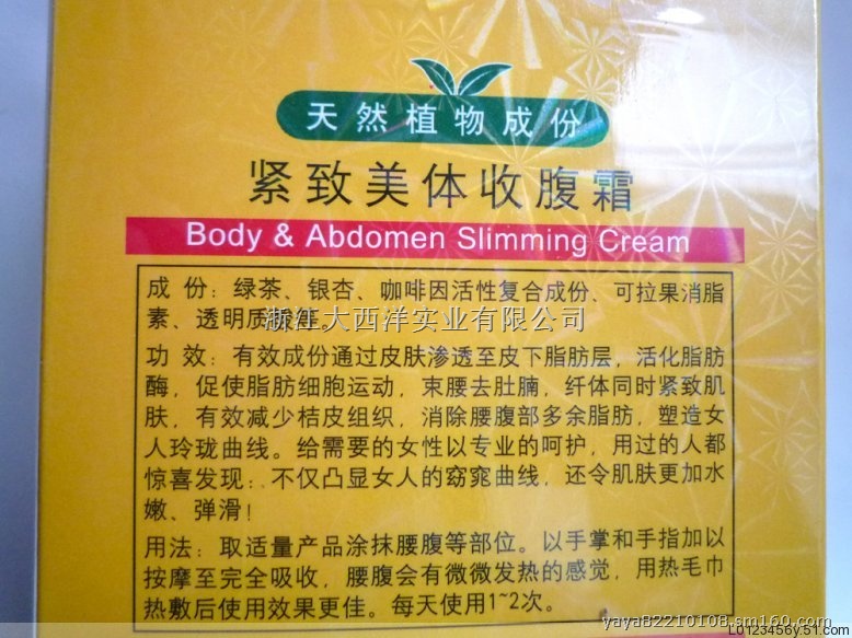 功效:有效成份通过皮肤渗透至皮下脂肪层,活化脂肪酶,促使脂肪细胞运动,束腰去肚腩,纤体同时紧致肌肤,有效减少桔皮组织,消除腰腹部多余脂肪,塑造女人玲珑曲线。结需要的女性以专业的呵护,用过的人都惊喜发现,不仅凸显女人的窈窕曲线,还令肌肤更加水嫩、弹滑!