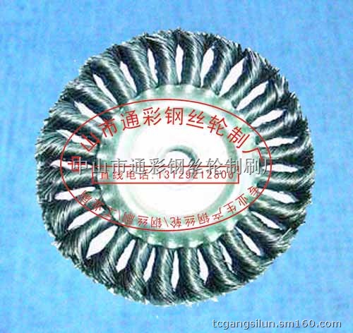 扭丝轮| 扭丝刷|采用进口优质钢丝并加厚生产,克服不耐用、平凡更换的弱点,广泛应用于船舶、车辆、橡塑、飞机、石化、冶金、国防、建筑、安装等行业。是目前金属体大面积除锈、清砂、抛光、拉毛、清除油漆最理想的工具。具有效率高,质量好等优点。我厂可根据客户要求定制各种孔径、外径、厚度的镀铜丝、黑钢丝、不锈钢丝等各种材质的钢丝轮。