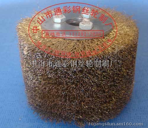 钢丝刷|钢丝轮采用进口优质钢丝并加厚生产,克服不耐用、平凡更换的弱点,广泛应用于船舶、车辆、橡塑、飞机、石化、冶金、国防、建筑、安装等行业。是目前金属体大面积除锈、清砂、抛光、拉毛、清除油漆最理想的工具。具有效率高,质量好等优点。我厂可根据客户要求定制各种孔径、外径、厚度的镀铜丝、黑钢丝、不锈钢丝等各种材质的钢丝轮。直线电话:0760-87820080 23938458 13129212800