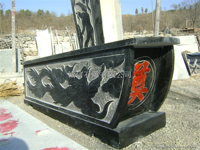 我厂建于2002年,厂驻地紧靠丰富的矿山资源 主要生产加工天青石石棺。生产的石棺分:一体.组合两大类 一体有:线雕。浮雕两种 组合有:平面线雕.平面浮雕组合:弧形线雕.弧形浮雕组合 欢迎各位新老顾客前来洽谈!!!! 我厂有多年从事石雕雕刻的老资深石雕艺人!! 价格不是最低,做工质量却是最好!!!!