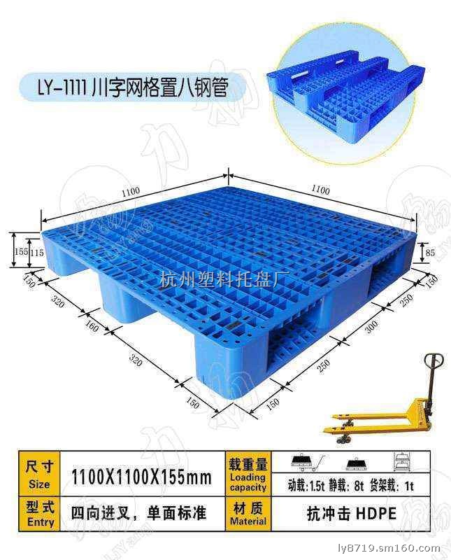 力扬塑料托盘厂采用高强度EPS30R原材料生产的各种规格塑料托盘、仓储垫板,整体承载性好、抗冲击性强、耐温性好。同时开发出啤酒饮料自动流水线专用托盘和仓储物流专用货架托盘主要规格型号:1400*1200*150 1400*1100*150 1300*1100*150 1200*1200*150 1200*1000*150 1100*1100*150 1200*800*160 1400*1200*140 843*435*63 540*345*55 1125*700*150 1200*1000*140 1200*1100*140 1200*1200*140 1000*800*160 1200*1100*150(MM)等双面、单面、川字底、九脚底等规格系列托盘及垫仓板。我公司生产的塑料托盘以广泛应用于食品、医药、化工、啤酒饮料、服装、电子等各企事业单位的生产与仓储过程。节省了人力物力,缩短了物流周转时间提高了工作效率