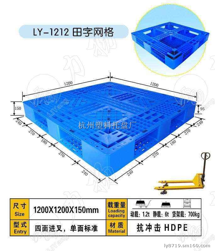 力扬塑料托盘厂采用高强度EPS30R原材料生产的各种规格塑料托盘、仓储垫板,整体承载性好、抗冲击性强、耐温性好。同时开发出啤酒饮料自动流水线专用托盘和仓储物流专用货架托盘主要规格型号:1400*1200*150 1400*1100*150 1300*1100*150 1200*1200*150 1200*1000*150 1100*1100*150 1200*800*160 1400*1200*140 843*435*63 540*345*55 1125*700*150 1200*1000*140 1200*1100*140 1200*1200*140 1000*800*160 1200*1100*150(MM)等双面、单面、川字底、九脚底等规格系列托盘及垫仓板。我公司生产的塑料托盘以广泛应用于食品、医药、化工、啤酒饮料、服装、电子等各企事业单位的生产与仓储过程。节省了人力物力,缩短了物流周转时间提高了工作效率