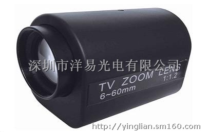 产品编号/Model No.:YL2M06060焦距/Focal Length:6mm-60mm相对孔径/Aperture(F):1.2接口/Mount:CS像面尺寸/Format(inch):1/3"水平视场角/Horizontal Field:44.5o-4.6o尺寸规格/Dimension:67×81x104mm备注/Comment:电动二可变/Two Motors,DC Drive Auto Iris