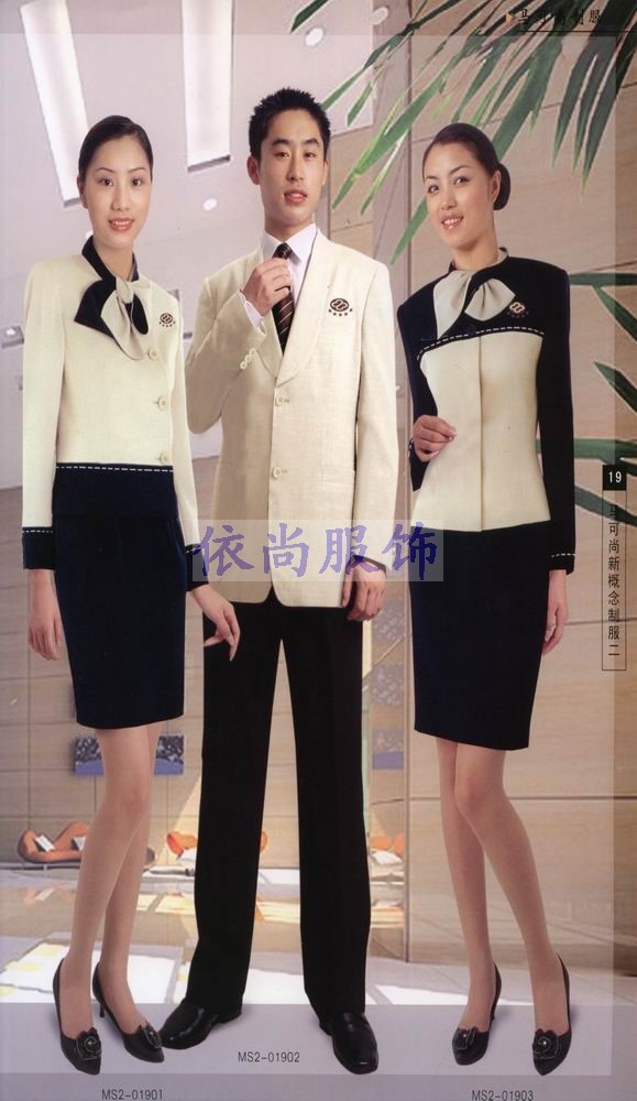 成都新依尚制衣厂订做的每一件酒店服、酒楼服装、宾馆服装、制服,代表的不仅是客户的形象,还代表着新依尚自身的形象。产品的好坏不是我们说了算,而是客户说了算。我们坚信我们的品质经得起考验,我们的服务经得起考验!促销服订做首选成都依尚制衣厂!我公司是一家集设计,销售为一体的企业。以诚信,专业为标准,引导时尚潮流。品质卓越,精益求精.专业订做女装,工装,制服装,学生装,酒店服装等。