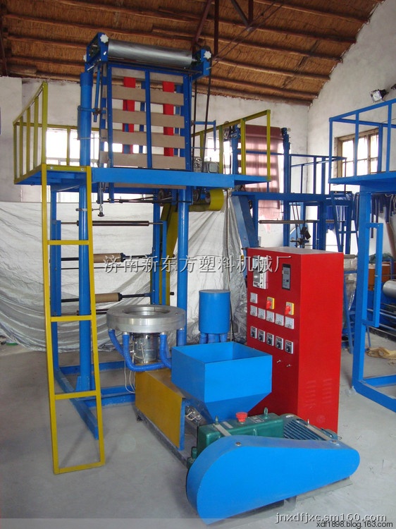 济南新东方机械厂生产高低压吹膜机是吹制高低压背心袋、平口塑料袋原料的理想设备,适合用高密度、低密度聚乙烯颗粒和再生聚乙烯颗粒做原材料,所吹制的塑料膜宽窄厚薄、颜色可以调整,颗粒和降解母料混在一起可吹出环保降解膜,机筒和螺杆均采用优质合金钢,经氮化处理加工而成。利用380伏电源变频调速,主电机功率7.5千瓦,最大挤出量25公斤、35公斤。