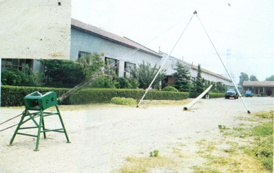 4 两棵辅杆(12米)支起后必须平行和主杆成为等腰三角形.两棵辅杆支撑点最大不能超过3.5~4米