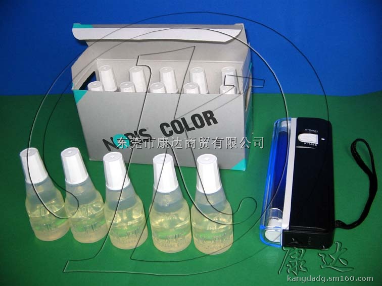 介绍 :此印油又称黑光油墨或紫外光油墨。在正常光照条件下是隐形的,但在紫外灯光照射下发光(ca.370nm)。适用于纸张及人体皮肤。可用于迪斯科舞厅入口油墨等,本产品环保对应RoSH指令合格,不含铅、六价铬、水银、聚溴联苯(PBB)、聚溴二苯醚(PBDE)等六大有害物质,属环保型印油(油墨)。