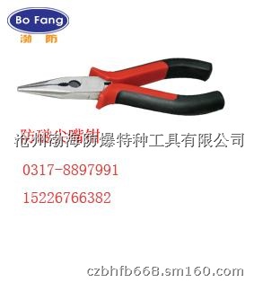 防爆尖嘴钳别名:修口钳、尖头钳、尖咀钳。它是由尖头、刀口和钳柄