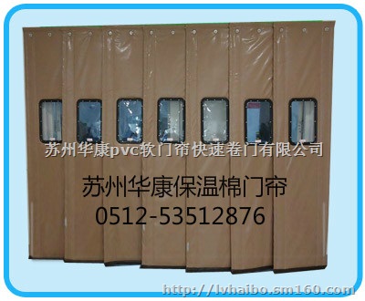 棉门帘、皮革棉门帘、帆布棉门帘。专业订做各种皮革棉门帘,选用防水布、防火布、优质帆布、针刺纤维棉精制加工而成。 面料品种、颜色多样化,可做图案印刷或喷绘,让您度过一个温暖、舒适的冬季。 双面皮革制成可开一个或多个视窗。自身较重,保温性好,可单层或多层重叠使用。具有保温、隔音、防风等主要特点。 本产品无褶无皱,美观大方,是防寒,保温的最佳选择。棉门帘内部采用增密处理,中间加入特质网格纤维进一步致密化民用棉毡。拉伸强度高保温性好,先进的工艺流程再加上优良的缝纫技术,,规格大小可按需订作。价格低廉,多用在商场、超市、学校、医院、工厂等处使用。0512-53512876