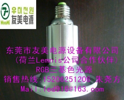 4.采用RGB三基色混合配光,与传统的蓝光加荧光粉技术相比其光效高,显色指数高,光衰低.