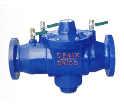 DF41-10倒流防止器也称为防污隔断阀是一种严格限定管道中水只能单向流动的水力控制组合装置,它的功能是在任何工况下防止管道中的介质倒流,以达到避免倒流污染的目的。