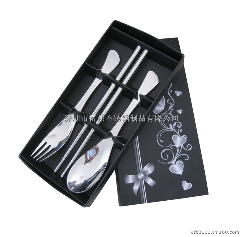 不锈钢餐具快乐时光勺叉筷三件套