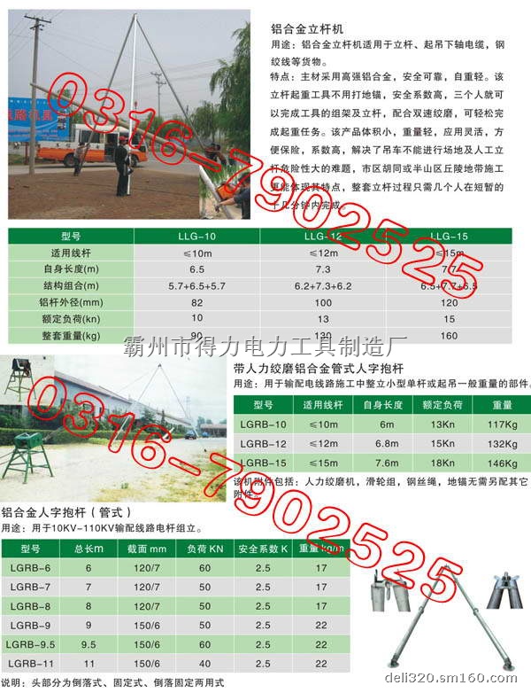 注:铝合金抱杆有方,圆两种型式,长度,用户自选,合同中注明.