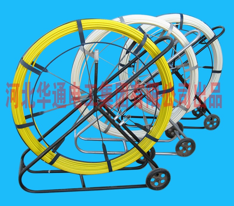 玻璃钢穿孔器又名(玻璃钢穿线器、玻璃钢穿管器)对于在管道中牵引引导绳是优秀的辅助工具。光滑又富于弹性的表面可使穿孔器轻松地通过狭窄的通道。穿孔器由三部分构成:铜芯、玻璃纤维加强层、******低密度聚乙烯防护层(平滑、坚固,可抵抗恶劣环境)。铜芯导体使捅条可以用不同方式轻易安放。璃钢穿孔器具有省时,省力,提高工效等优点,可用于电信管道清洗及光缆,电缆和塑料子管的布放。使用时首先将玻璃钢覆杆由引轮引出,然后与相应的金属头联接,穿入管路内。用于清理时,引导头带动清理工具,可以清理管道;用于布放电缆时,可先将钢丝或铁线带入,尔后用钢丝或铁线牵引电缆入管。 | ||||||||||||