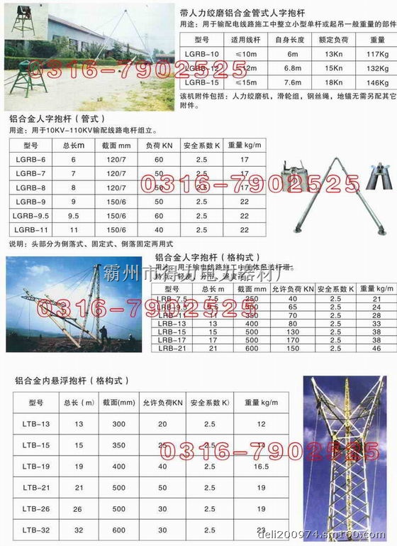 铝合金人字抱杆(管式):用途:用于10KV-110KV输配线路电杆组立。