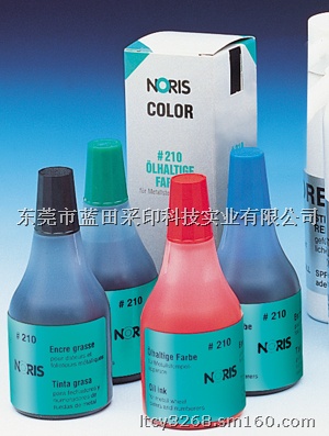 NORIS诺丽色NO.210办公类印油、环保印油、规格:25ML、颜色:黑色、蓝色、红色、绿色、紫色◆No.210油墨是一种彩色油基油墨,光照条件下性能稳定,具备良好的化学特性,油墨可以深入纸张内部,印上去的油墨除不掉,印迹清晰、不脱落、永不褪色、效果极佳。已通过SGS环保检测认证。符合ROSH标准。