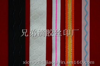 我司专业从事在各种织带,花边,肩带,橡筋带,袜子,服装里料,烫金,硅胶涂胶,印刷,滴胶,联系赵生,13711453418