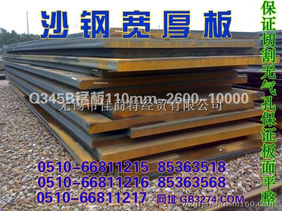 沙钢集团宽厚板生产线自04年投产以来,视质量为生命,对沙钢宽厚板出厂进行严格的检验检查,杜绝钢板表面以及内在的瑕疵,所有钢板一律进行出厂前的机械性能冲击,冷弯实验,以及探伤实验,确保钢板质量,无锡佳商特经贸有限公司 作为沙钢一级经销商,本着对客户负责的经营理念,常年为广大新老客户供应优质的沙钢厚钢板,价格低,质量优,