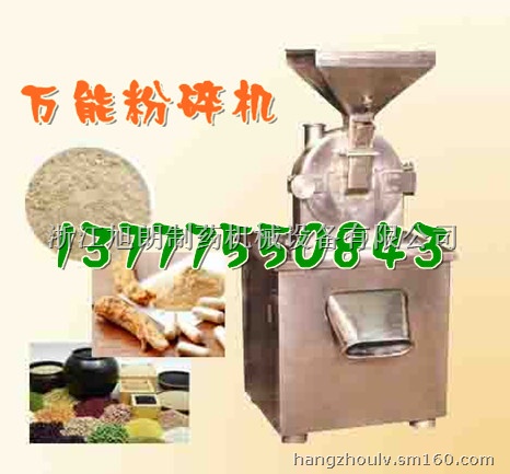万能粉碎机利用活动齿盘和固定齿盘间的相对高速运转,使被粉碎物经齿盘冲击、摩擦及物料彼此间碰撞而获得粉碎。粉碎物可直接从磨腔中排出,粒度大小由更换不同目数的筛网决定。本机结构简洁、坚固,运转平稳,粉碎物料快速、均匀,效果良好。本机全为不锈钢材料制作,机壳内部(粉碎槽)所有齿槽经精密机加工从而达到表面平滑,易于清理,改变了普通粉碎机内壁粗糙、易积粉、难清理的现象,使食品、药品、化工等生产更能符合国家标准,达到GMP的卫生要求。
