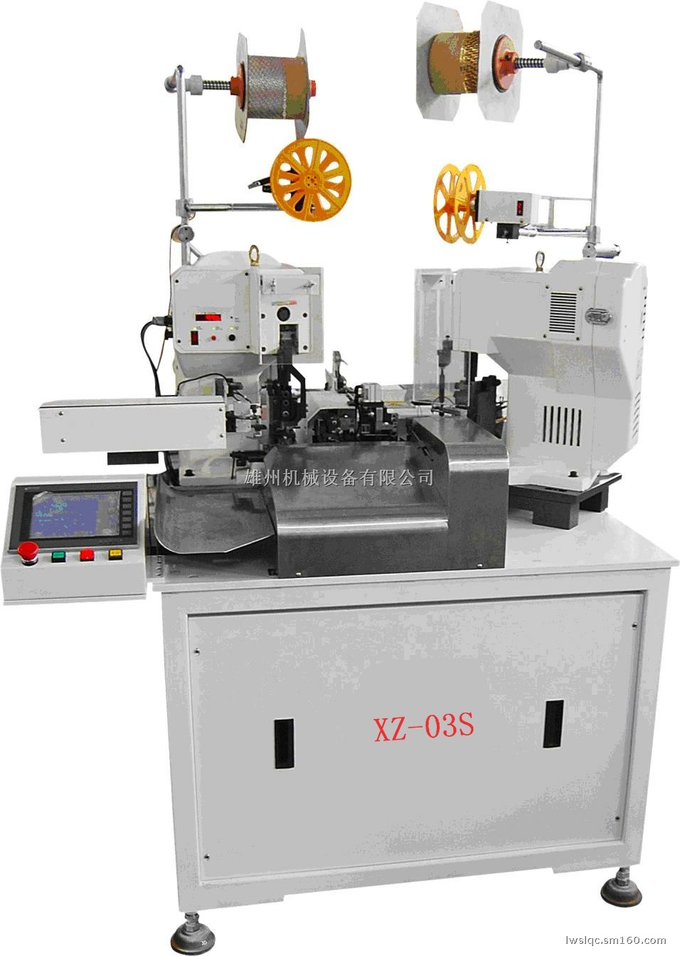 A 特点:该设备主要部件采用进口原件,切线、剥线、端子压着一次完成。PLC加触摸屏,运动定们采用高精密伺服马达,轻易解决模具中心点偏差的问题。送线部分采用两组送线,提高电线长度精准度,大大提升机器的稳定性。