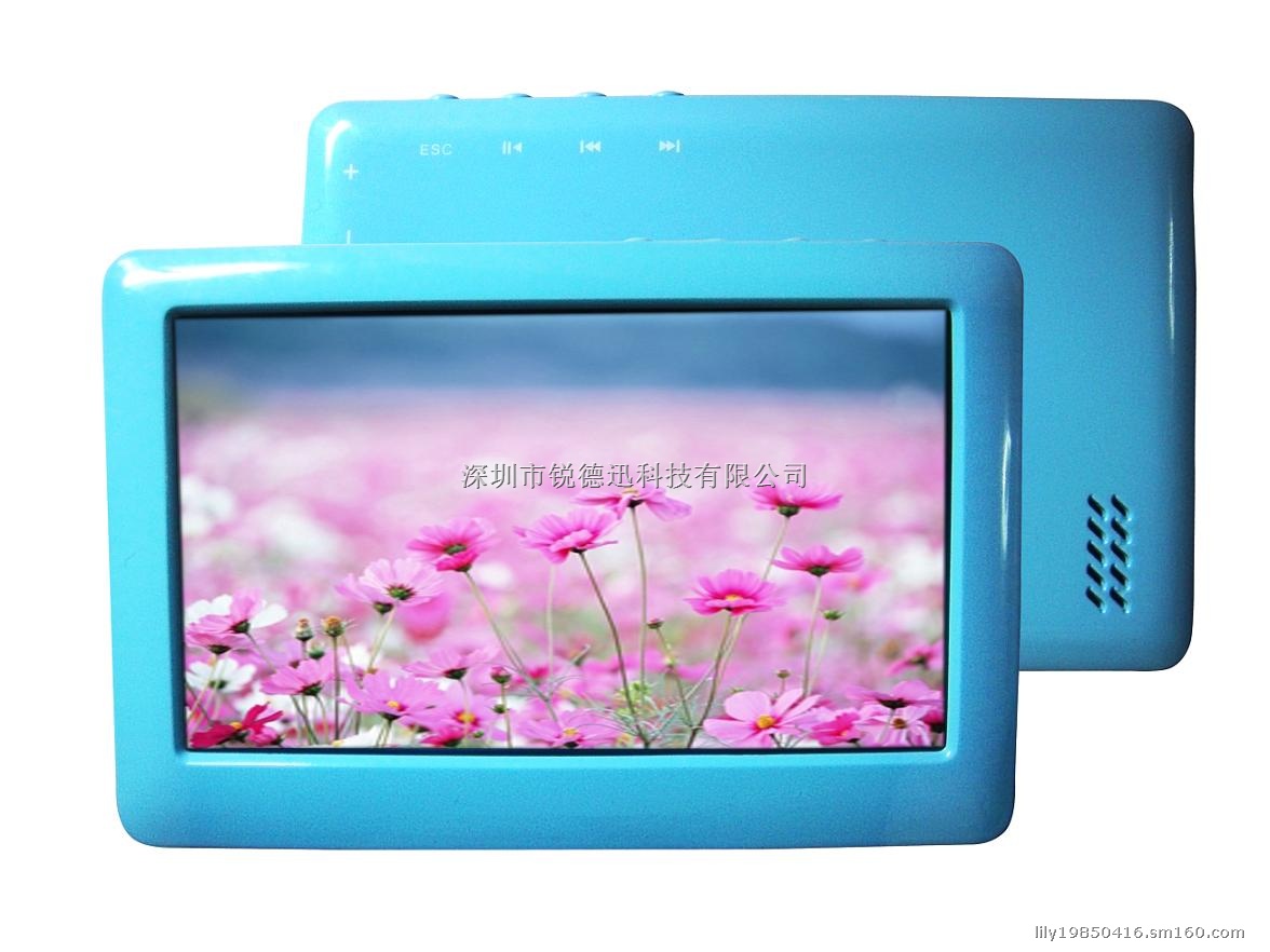 外壳独特设计,整体外观精致大方:4.3寸全彩高清TFT显示屏;支持RM/RMVB 1280*720P(1280P)等多种视频格式的高清电影播放,无需转换播放;画质更显细腻;强大的视频播放功能;高清电影顺畅播放.支持多种音频格式MP3/WMA/AAC/WAV/RA/FLAC等主流音频格式,支持歌词同步显示,支持5种EQ均衡模式;支持电子书功能,可边听音乐边看书;支持电子相册功能,幻灯片播放,主题更换,背景设置,定时关机设置.支持TV-OUT输出:支持NTSC和PAL两种制式;支持多国语言;外插TF卡扩展存储空间;支持内置录音,内置喇叭。内置高容量电池 (带FM功能)