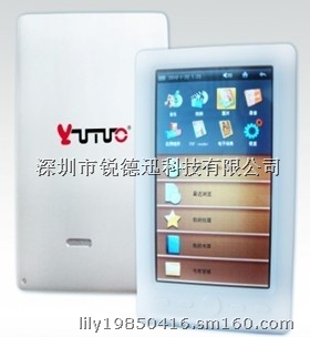 5英寸高清全触摸屏, 采用华芯飞CC1800A方案,支持1080P (1920×1080 分辨率,目前高清最高 标准),全码流码率高清播放;无须转换直接支持全码流播放。断点续播、 SRT 等多种字幕、高清音轨(支持AC3/DTS 等多种视频伴音)等实用设置能更好的体验视频的效果,支持JPG、BMP、GIF、GIF动画、PNG、TIFF等格式的图片浏览,可旋转或以幻灯片方式播放;支持:WAV 录音格式;支持支持FM自动搜索、手动搜索皆可;支持多国语言;支持PDF/FB2/EPUB/PDB/MOB1/HTML/XML/TXT/LCR等电子书格式阅读与语音朗读,支持TTS发音,智能断章,多角度看书,手写笔批注功能,支持分辨率高达1024×720 的HDMI 高清数字视频输出,画面效果足以媲美蓝光 DVD、HTPC 等高清播放器,支持OTG功能,可在电视上高清晰播放电影。移动存储:USB2.0高速接口,读写方便