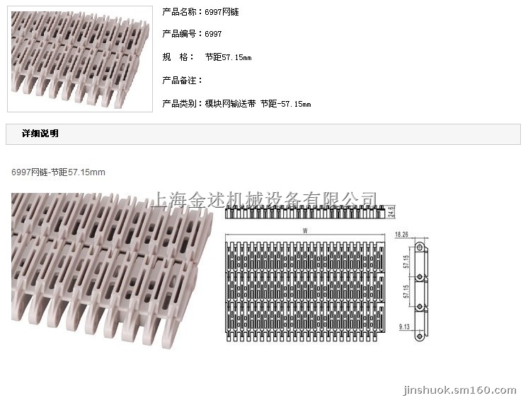 上海金述有限公司专业生产销售:5997模块网带 900平板型网链,900平格型网链,900突肋型网链,100平格网链, 1005网链链轮,1005滚珠面网链,1100网链链轮,1100平板网链,1100平格网链,1100网带,800平板型,800平格型,6200网链,4705链网,4705胶面防滑网链,4705平板链网,4706平格网链,4706网链, 5935网链链轮, 5935链网,5936平格网链,5996网链,5997网链, 2200平格/2200TAB转弯网链,4000网带,4000链网,4705链网,4705真空网链,4705平板网链,4706平格网链,4706网链,5935网链链轮,5935网链,5935链网,5936链网,5936平格网链,5996网链,5997网链,5997网带,5997链网,6200网链,OPB网带,OPB网链,OPB链网,OPB型塑料链网,OPB平板链网,OPB平格链网,OPB刮板链网,OPB裙边链网,5930系列链网, 400突肋链网,400平格链网,400平板链网,4700平格链网,,4700平板链网 7700系列链网,4809系列链网,200敞格型,200挡板型,200平板型,200裙边型,OPB网带,OPB网链,OPB链网,OPB型平格网链,2200平格/2200TAB转弯网链,食品输送带 40P链条,60P链条,3/4塑料链条,4分PP链条 ,6分PP链条,6分塑料链条 ,5分PP链条,5分塑料链条,PP链条,纯PP塑料链条,RSP50塑料链条,RSP50椿本链条,PP塑料链条,PP本色链条,PP磁白链条,KPRS系列塑料滚子链条,TIANYU40P,TIANYU60P,TIANYU50P,塑胶链条,塑料链条,RS40P塑胶链条,RS60P塑胶链条,RS40P塑料链条,RS60P塑料链条,RS40P龙骨链, RS60P龙骨链,纯PP链条,PP本色链条,纯PP塑胶链条,纯PP塑料链条,耐酸碱PP链条,耐腐蚀PP链条,RS40P双排塑料链条,RS60P双排塑胶链条,太阳能板输送链条,玻璃输送链条,木板输送链条,发泡机链条,清洗机塑料链条超声波专用链条 刮泥机塑料链条 刮板机传动链条 刮渣机塑料链条,气浮机传动链条,气浮机塑料链条,非金属刮泥机链条,非金属刮板机链条,非金属刮渣机链条,污水处理传动链条,气浮沉淀机链条,化工行业专用链条,POM塑料链条,ABS塑料链条。 812系列型号分别为:812K325,812K450,812K600,812K750,831系列型号分别为:831K325,831K450,831K750,821系列双绞链板型号分别为:821k750,821k1000,821k1200,880系列转弯链板型号为:879TABK325 879TABK450,880TABk325,880TABk450,880k600,880k750,880k1000,880k1200, 880BOK325,882系列链板型号为:882K450,882K600,882K750,882K1000,882K1200, 882系列转弯链板型号为882TAB-K450,882TAB-K750,882TAB-K1000, 882TAB-K1200,1873系列型号分别为:1873K325,1873K450,1873K600,1873K750, 1873K1000,1873K1200,1713系列型号分别为:1713K1000,1713K1200,863/963系列型号分别为:863/963TABK250/863,963TABK325-86,3963TABK450 ,863/963TABK500,863/963TABK1000,843系列型号分别为:843K138,843K200 ,843K325