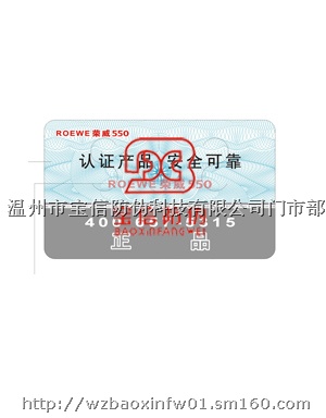 温州宝信防伪专业制作产品防伪封口贴制作封口贴 桶装水封口贴制作 印刷防伪封口贴 包装合封口贴 酒盒防伪封口贴各类防伪封口贴制作 揭开留字封口贴 揭开留公司名称防伪封口贴 VOID防伪封口贴 种子防伪封口贴 揭开留字防伪VOID封口贴 数码防伪封口贴可变数字防伪封口贴 800防伪封口贴 酒类专用防伪封口贴 散热器防伪合格证 一次性封口贴 撕毁无效封口贴 等,欢迎各界朋友来电洽谈: