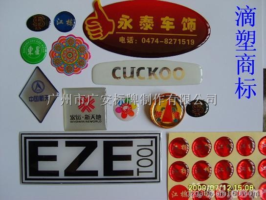 我公司专业生产各种水晶滴塑商标系一种水晶不干胶和pvc标牌;是适用于电冰箱,空调,电动车,摩托车,不锈钢制品,塑料制品,木制品,家具,电子,电器,机械,五金,家具、日用品等高档产品粘贴标牌、我公司采用国内外胶水和PVC,PET,PP为材料,经过丝网印刷及UV五色机印刷滴塑一条龙服务而成。该标贴使用方便,美观大方,使您的产品锦上添花,规格尺寸;可根据客户需要定制。产品颜色以及内容由贵公司提供。 各种材料由贵公司定制,字迹清晰,质量保证,交货及时,送货上门 (产品送达,检验合格后,再付款,敬请放心与我公司合作!)咨询请致电;137-60808869 QQ;1131869868,网站;www.gzgabp.com 联系人;陈先生,'不管您在哪里,不管路途多远,只要您一个电话,广安一定会为您提供快捷、满意的服务,因为我们的宗旨是:“想客户之所想,急客户之所急【特别申明】单价需根据客户的数量、规格、印刷颜色的定制要求计算,详情请商谈再确定,谢谢!)
