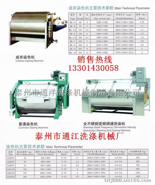 江苏泰州市通洋洗涤机械制造有限公司专业设计、制造30-300kg各种规格毛衣水洗机、真丝砂洗机,电力纺砂洗机,丝绸砂洗机,面料砂洗机,隔仓砂洗机,工业洗衣机、牛仔水洗机、喷砂机;φ500-1500mm离心脱水机;30-150kg烘干机;1800-3300mm烫平机;10-100kg全自动洗脱两用机等系列产品。这些产品常年出口、销往全国。广泛用于纺织、针织、染织、丝绸、服装、制衣、宾馆、饭店、院校、医院、洗衣房等行业。工厂热忱欢迎国内外客商来电、来函、来人洽谈业务共同发展!