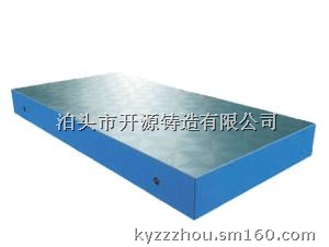 检验平板制成有筋板式和箱体式,工作面有长方形、正方形或圆形,工作面采用刮削工艺,工作面上可加工V形、T形、U形槽和圆孔、长孔等。工作面硬度HB170~240。