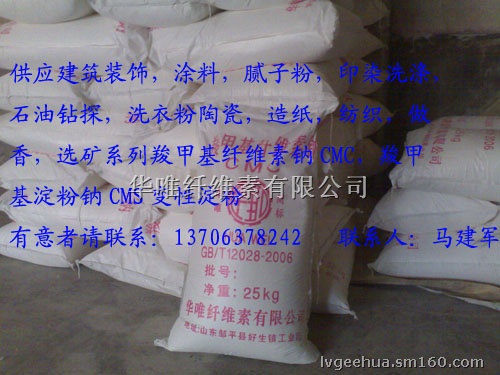 华唯纤维素有限公司是生产纤维素的专业厂家,始建于2000年,有多年的生产经验,先进的生产技术和完善的检测手段,能生产用户所需要的各种产品,是滨州市“守合同重信用”企业。长期供应造纸、陶瓷、涂料、腻子粉、纺织、洗涤、印染、石油钻井、建筑装饰等行业用各种型号的羧甲基纤维素钠CMC,羧甲基淀粉CMS,华唯纤维素将以优质的产品,优良的信誉,优越的服务,优惠的价格,竭诚与您共创辉煌。