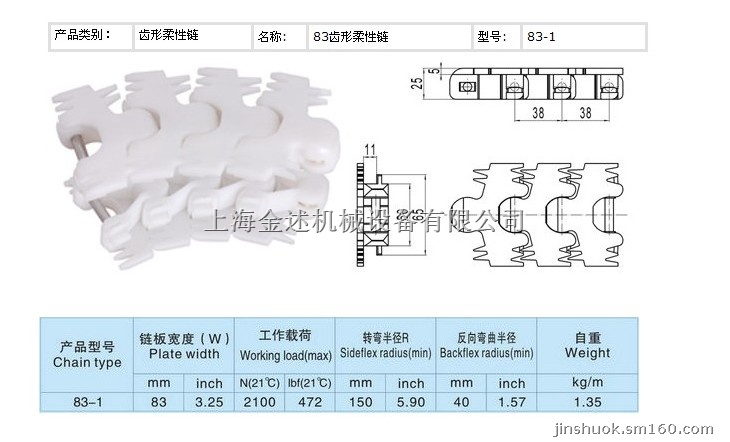 上海金术机械设备有限公司坐落于上海松江区。齿型/柔性链无论是在水平面还是垂直面都能胜任急速的转弯,同时摩擦力和噪音都很小,工作温度:-20-+60度最高输送速度:50m/min应用于:食品和饮料工业 卫生卷纸输送-化妆品行业-烟草制造业-电机制造业-机械零件制造业