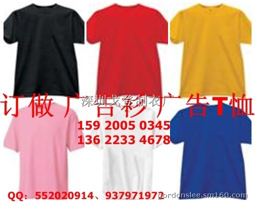 ②T恤主要颜色有:白色、黑色、红色、黄色、彩蓝色、天蓝色、果绿色、咖啡色、粉红色、青色、紫色、橙色、墨绿