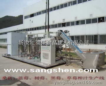 NFC鲜榨果汁生产线是个机电一体化快装式果汁加工厂,配有本公司研发的高效榨汁机,采用全封闭榨汁技术,特别适合加工蓝莓、桑葚、枸杞、沙棘、五味子等浆果,配置不同的前处理设备,还可加工石榴、葡萄、苹果、桃、西红柿、胡萝卜等鲜果蔬汁;杀菌设备采用了国际最先进的三段式加热法,灭菌干净彻底;无菌灌装机采用本公司的专利产品,安全可靠,所生产的NFC鲜榨果汁,无菌包装,不加任何防腐剂,可在常温下贮藏和运输。果汁内用铝箔无菌袋,外用大铁桶包装,原汁每桶200公斤。本公司为需方免费培训操作人员,实行交钥匙工程,详情请登录www.sangshen.com.