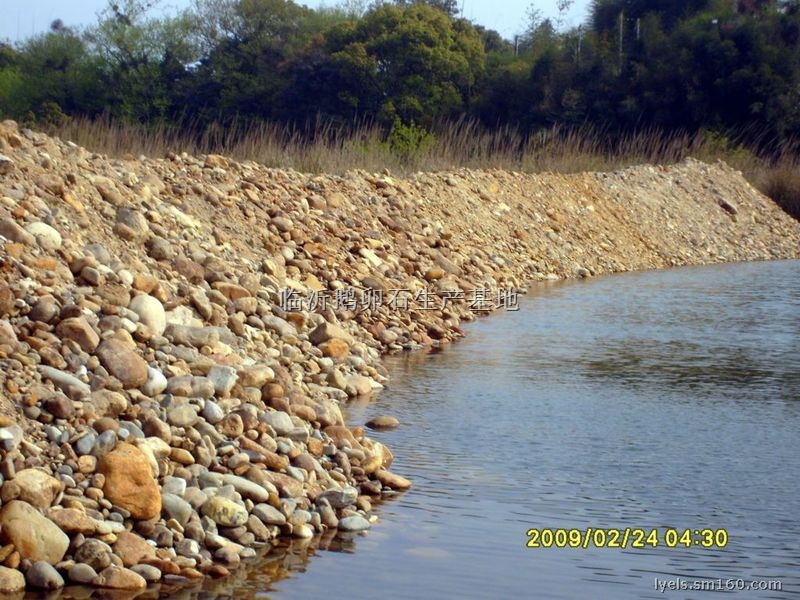 山东临沂鹅卵石生产基地,位于沂南县西山郊河道旁。鹅卵石,是一种纯天然的石材。在经过山洪冲击、流水搬运过程中不断的挤压、磨擦,饱经浪打水冲的运动后,形成规格不同大小,形状各异,颜色不同的不规则石头。形状像鹅蛋,敲着声音很脆,主要化学成分是二氧化硅,外表光滑漂亮,色泽艳丽,表面光洁,耐磨度高,质地坚硬、不易损毁。主要用于电厂(变压器专用鹅卵石,过滤油用)、鹅卵石滤料垫层、园林路面铺设等。不同规格大小、颜色供客户选择,天然鹅卵石,品质好,信誉可靠,深受省内外客户好评。