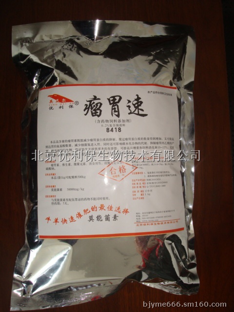 2.莫能菌素又叫瘤胃素。在牛消化道中几乎不吸收,因此,一般不存在在组织中残留和向可食性畜产品转移的问题。在对架子牛进行高精料肥育时应用莫能菌素,能增加丙酸的产生,减少饲料中蛋白质在瘤胃中的降解,而增加过瘤胃蛋白质的总量,增加净能及氮的利用率,并使肠壁变薄而有利于营养物质的渗透和吸收,瘤胃中纤毛虫和细菌总数增加1~2倍,还剌激脑下垂体分泌激素促进生长发育,从而提高增重速率。每头牛每天200~360毫克混于精料中喂,或把混有莫能菌素的精料与粗饲料混合喂,一般增重可提高15%~20%。