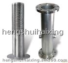 目前国内采用的树脂捕捉器大多为多孔圆桶外包涤纶网,在运行中常出现滤网贴紧筒壁,引起孔堵,造成很高阻力,且涤纶网在运行中易破损,造成树脂漏入除盐水系统。不锈钢梯形绕丝树脂捕捉器克服了上述缺点,捕捉效率高,通流面积大、机械强度好、压强小。