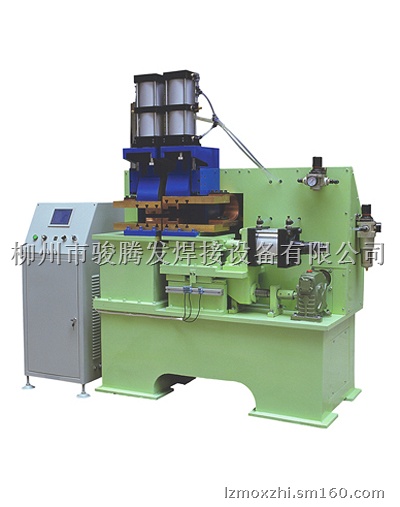 将对接的工件,通过气液控制,先通电缓慢推动将工件焊接处表面的氧化和凸起不平处闪光去掉后让焊接的工件端面热塑化,再迅速加一顶锻力使焊接两端面渗透熔接。这种焊接,强度高,致密性好,无假焊,无夹渣,无气孔,广泛用于“刀、叉、匙、铲”等餐具的把手的对接焊,以及圆管、方管、圆钢、扁铁、自行车钢圈,摩托车钢圈等五金产品焊接。