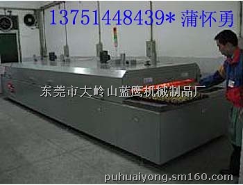 隧道炉:隧道炉是提供连续性烘烤的专业设备,可配合车间流水作业生产,可持续不间断烘烤产品,可根据产品不同生产需要调节烘烤温度、输送速度及烘烤时间,可独立分组控制烘箱及运风马达,能提高生产效率,生产量大,速度快,节省人力。发热区顶部装有运风马达,中间衬保温棉,隔热保温性强、加热元件布置合理,能源消耗低。采用热风循环,使上下温度更均匀,确保产品烘烤质量。全自动恒温,最高温度至400℃可调,隧道炉的输送方式:网链式、网带式、串杆式、铁弗龙式、皮带式。加热方式:电热管加热、石英管加热、远红外线辐射加热。