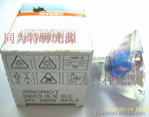 OSRAM HLX 64657 24V 250W EVC/FGX 充氙米泡,G6.35主要用于高射投影仪彩扩,显微镜等