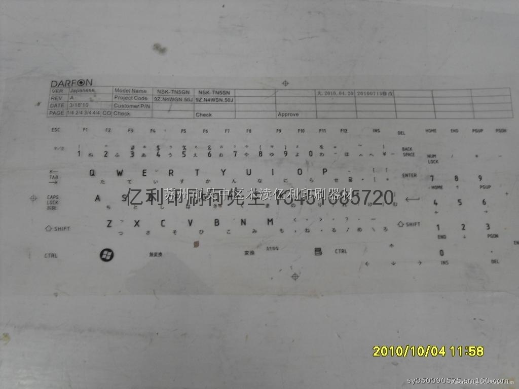 网版菲林,菲林制作,键盘菲林
