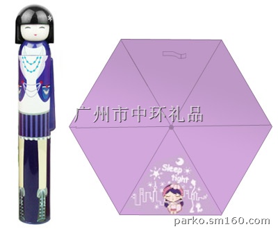 娃娃雨伞-山竹型号:U-1811D产品尺寸:27x4.6x4.6 CM外箱尺寸:46.5x24.2x29 CM装箱数量:50 PCS/CTN毛重:16 KGS/CTN材料:ABS、Terylene、Metal包裝: 彩盒