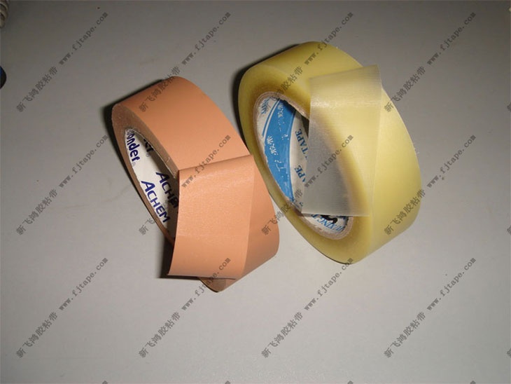免刀胶带由软质压纹PVC膜涂橡胶型压敏胶制成。有土黄跟透明两种颜色。规格:长度为25M,宽可订做。