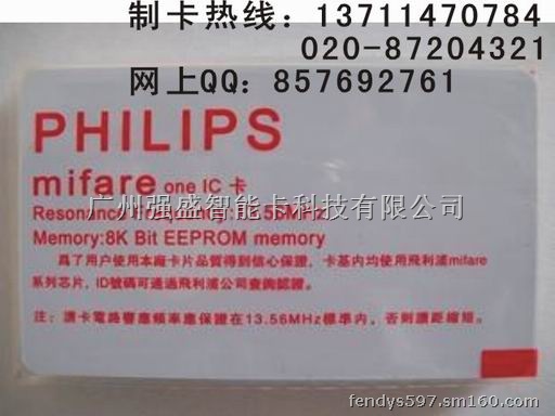 ◇ 芯 片: Philips Mifare 1 S50