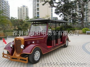电动老爷车,重庆电动老爷车,凯逸电动老爷车价格合理,质量可靠,是目前国内最先进的四轮特种电动车。整车制造技术是采用美国、英国、德国及中国国内最高端技术。美国进口的高频CURTIS串励控制器,可设置多种运行模式(速度模式、加速模式、自动减速模式),具有限电及自动反复多充电功能,覆盖组件采用"PP"汽车专用工程材料,并自主研发出国内外目前最具特色、最受消费者欢迎的模式和款型,整车既有欧式风铃、艺术铁花等古典艺术装饰,又有配备现代无线液晶电视、车载DVD、倒车雷达等高科技现代装备,高贵典雅又不失新颖时尚。车身线条设计圆润流畅,车顶大气挺拔,整车性能优良,牢固耐用。独特而具个性化的操控系统、转向系统稳固灵活、手感舒适、轻便流畅,操作极其简便;各项技术指标均超过国内行业水平,并已逐步走进国际先进行列。